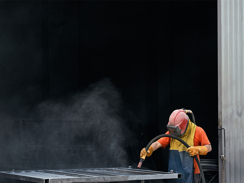 Piaskowanie to proces mechanicznego czyszczenia powierzchni, który polega na usuwaniu rdzy, starej farby i zanieczyszczeń za pomocą strumienia sprężonego powietrza z cząsteczkami piasku, przygotowując metal do dalszej obróbki.